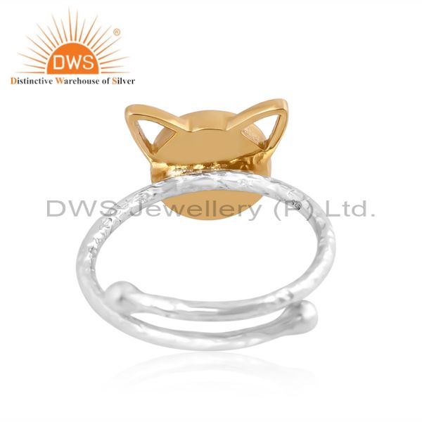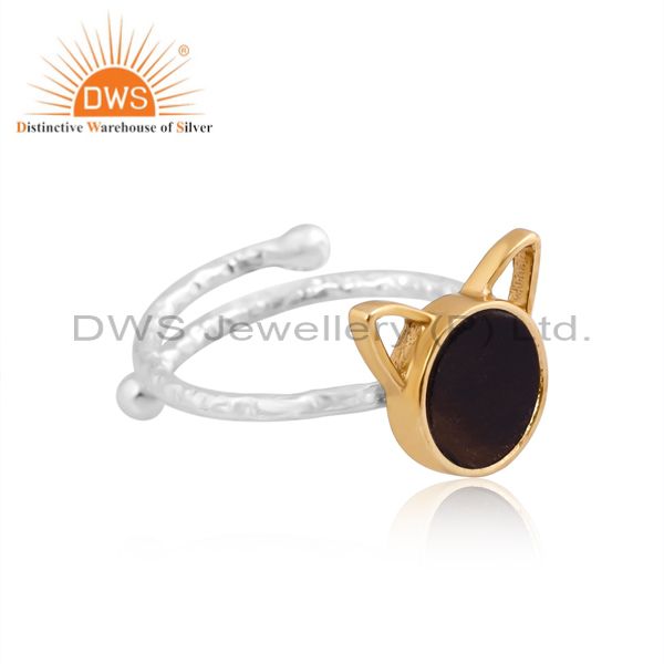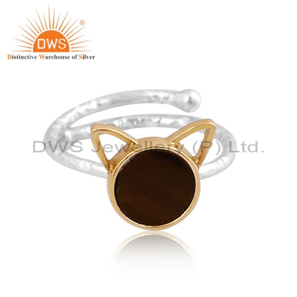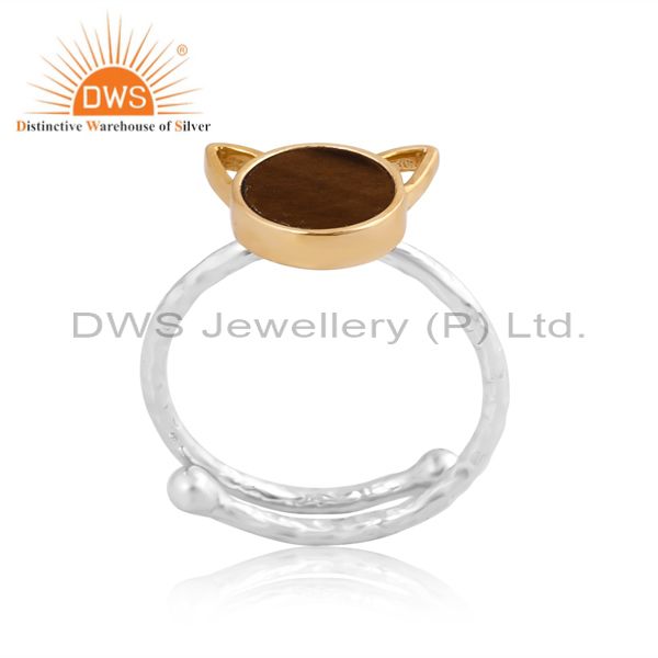 Tiger Eye Yellow Gold Plated Cat And Silver Ring