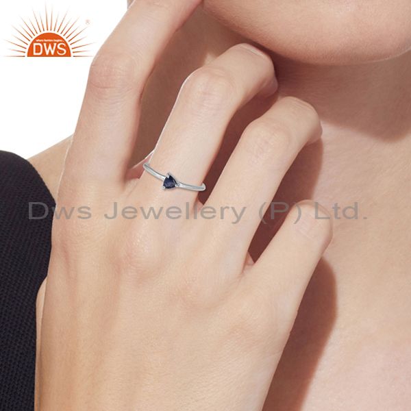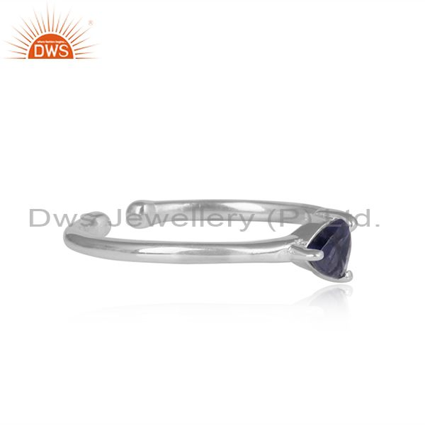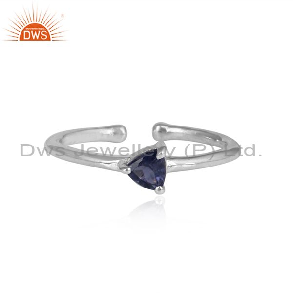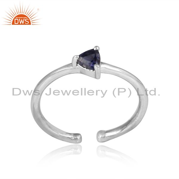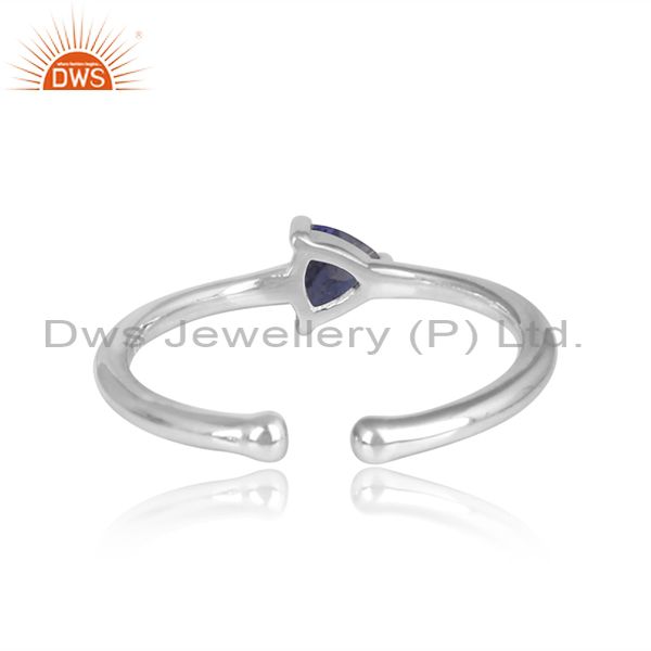 Triangle Cut Iolite Set Sterling Silver Fine Ring